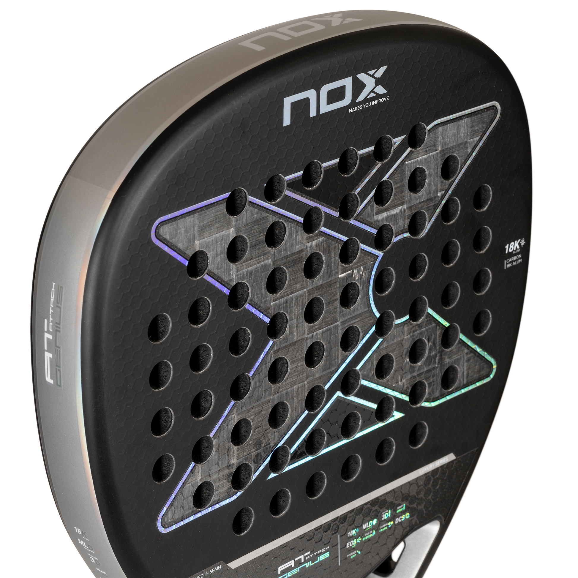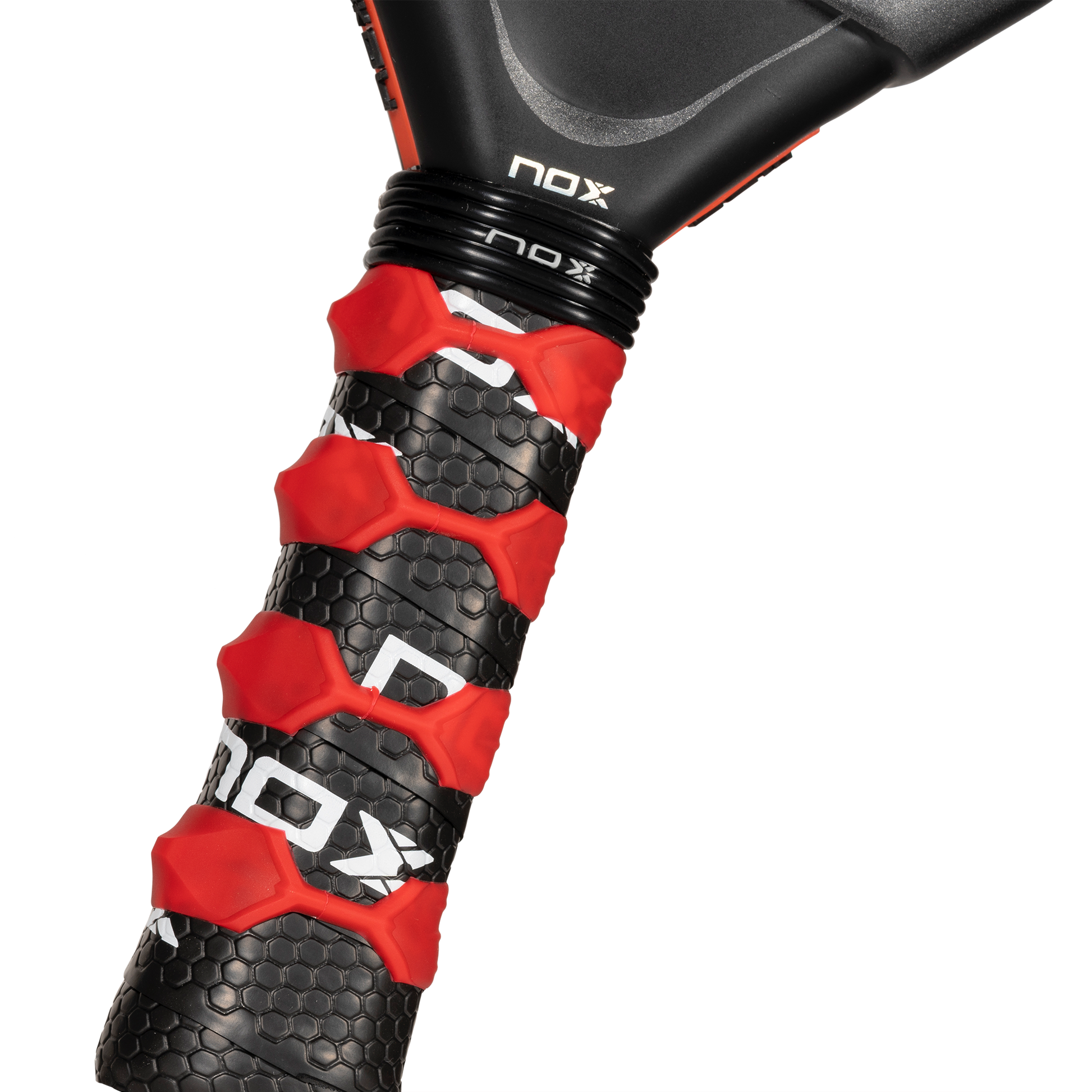 La empuñadura de la pala es el punto de unión entre tu cuerpo y tu pala y, por ello, hemos prestado especial atención también a esta zona de la pala. Por un lado hemos incorporado la tecnología Pulse System, dos bandas diseñadas para absorber vibraciones. Además, toda la gama Luxury 2024 incorpora la tecnología patentada NOX Custom Grip® y certificada por Testea Padel para el aumento de agarre y disminución de vibraciones.