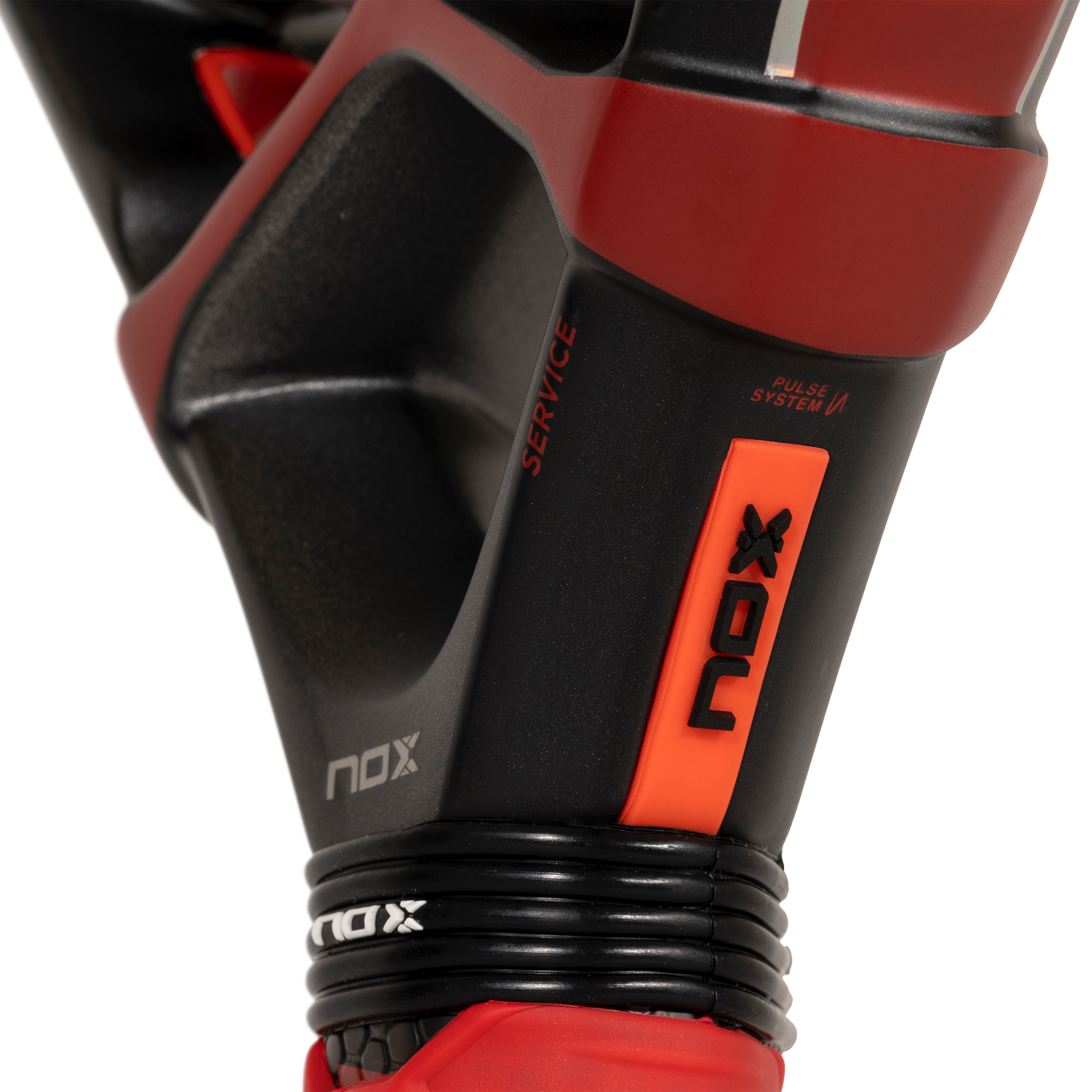 La empuñadura de la pala es el punto de unión entre tu cuerpo y tu pala y por ello hemos prestado especial atención también a esta zona de la pala. Por un lado hemos incorporado la tecnología Pulse System, dos bandas de goma diseñada para absorber vibraciones. Además, ahora de serie toda la gama Luxury incorpora la tecnología patentada NOX Custom Grip® y certificada por Testea Padel para el aumento de agarre y disminución de vibraciones.
