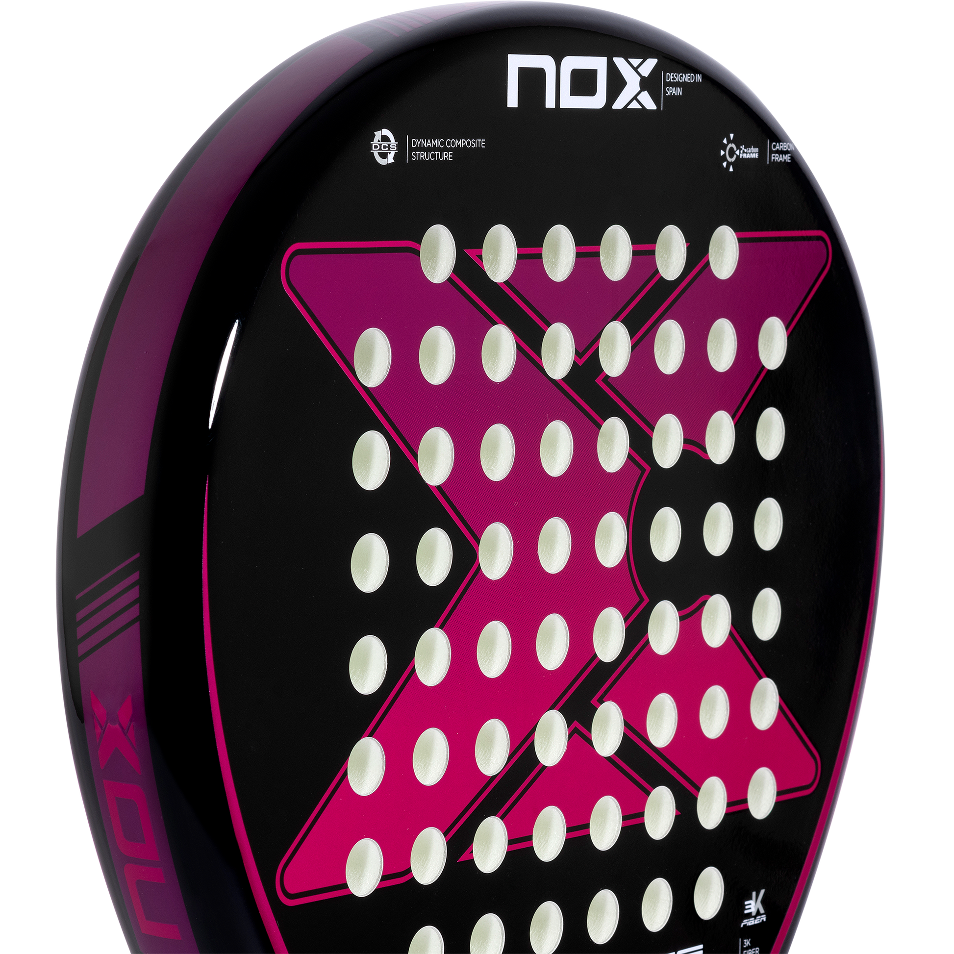 Con la aplicación de más cantidad de material desde el marco hasta cuatro centímetros dentro de la cara minimizamos la diferencia de dureza entre el marco y la cara. De este modo cuando se golpea la bola con las partes exteriores de la pala minimizamos el posible corte de las fibras que se podría producir al hundirse la goma.